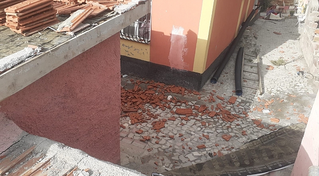 Fırtına çatıdaki kiremitleri savurdu