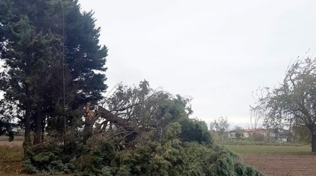 Marmaraereğlisi ilçesi Dereağzı Mahallesi’nde bulunan bir çam ağacı aşırı fırtına ve rüzgar nedeniyle kırılarak yola devrildi.