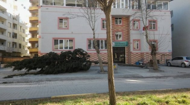 Kahramanmaraş'ın Pazarcık ilçesinde kuvvetli rüzgar nedeniyle devrilen ağaç, park halindeki bir otomobilin üzerine düştü.
