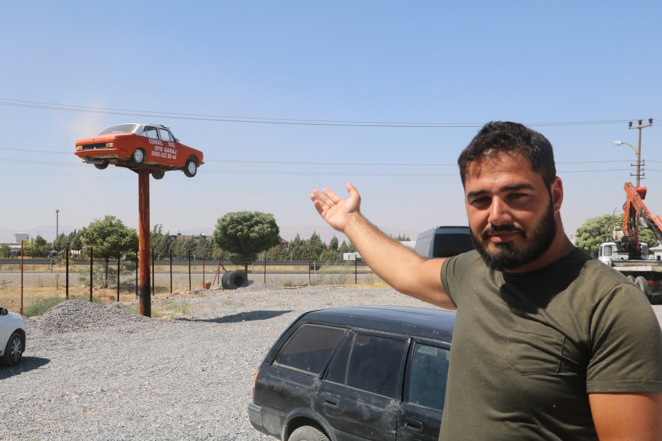 Malatya’nın Yeşilyurt ilçesi Organize Sanayi bölgesinde otopark işletmesi bulunan Cebrail Koç, vatandaşların dikkatini çekebilmek için 1983 model otomobili aksesuar olarak kullandı. Koç, kendisine ait otomobili 5 metre uzunluğundaki demir direğin üzerine vinç yardımıyla yerleştirdi. Malatya-Ankara karayolunda buluna direk üzerindeki otomobil vatandaşların ilgi odağı oldu.