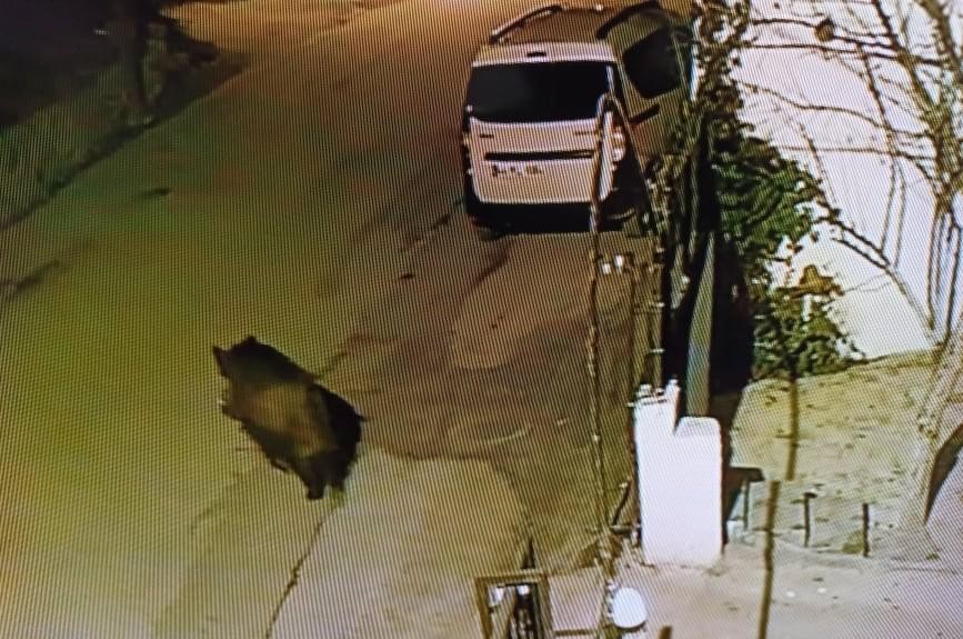 Malatya'nın Darende ilçesinde aç kalınca şehre inen yaban domuzu mahalle sakinlerini tedirgin etti.