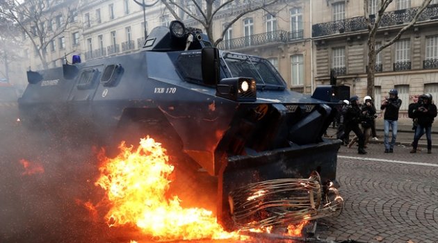 Fransa'da devam eden Sarı Yelekliler eyleminde zırhlı araçlar ilk kez sokağa indi.