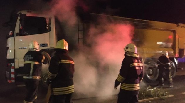 Sivas’ta seyir halindeki kamyonun ısınan balataları yangına neden oldu.