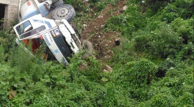 Çarpmanın etkisiyle duvarı yıkan kamyon, patpat olarak adlandırılan tarım aracına da çarptıktan sonra arsaya uçtu. Kazada sürücü hafif şekilde yaralandı.