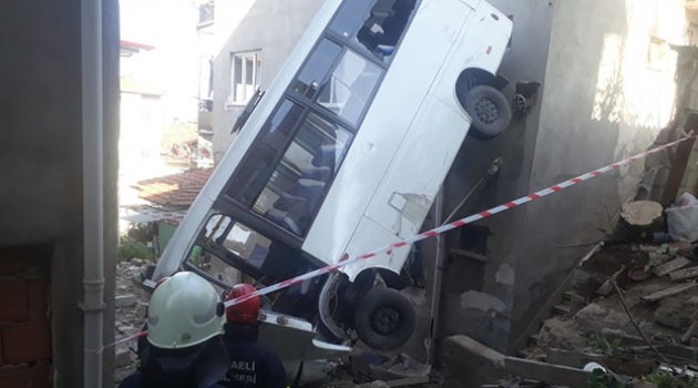 Kocaeli’nin Gölcük ilçesinde yokuştan aşağı indiği esnada freni patlayan yolcu minibüsü, duvara çarparak bahçeye uçtu. Kazada 3’ü ağır toplam 12 kişi yaralandı.