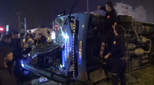 Freni tutmayan otobüs devrildi: 1 yaralı
