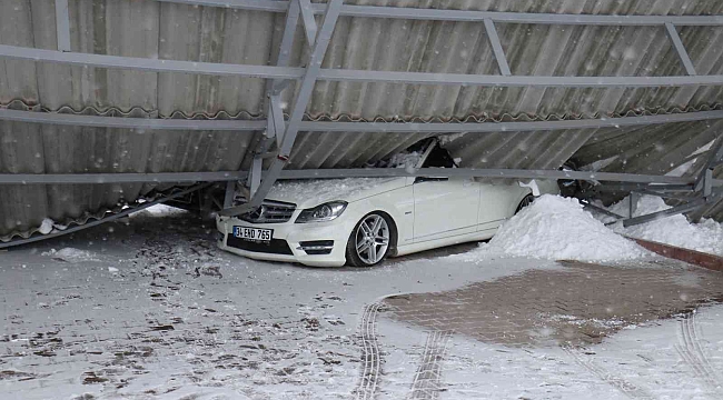 Malatya'da yoğun kar yağışı sonrası Galericiler Sitesi'nin çatısı çöktü. Çatının üzerine devrildiği 15 araçta hasar meydana geldi.
