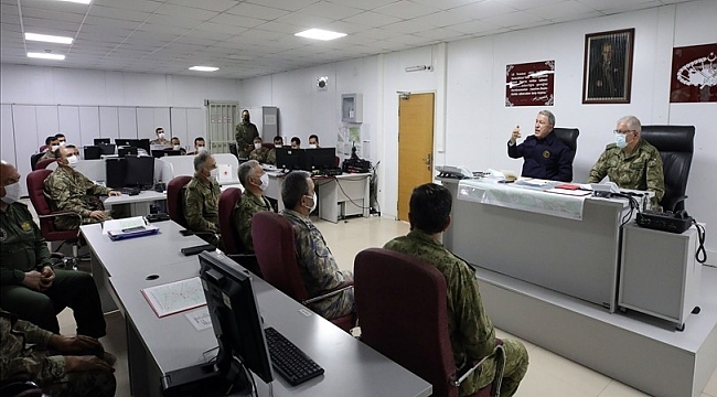 Milli Savunma Bakanı Hulusi Akar, ile beraberindeki Genelkurmay Başkanı Orgeneral Yaşar Güler, Kara Kuvvetleri Komutanı Orgeneral Ümit Dündar, Deniz Kuvvetleri Komutanı Oramiral Adnan Özbal ve Hava Kuvvetleri Komutanı Orgeneral Hasan Küçükakyüz, Irak'ın kuzeyi Gara bölgesindeki teröristlere ait hedeflere yönelik gerçekleştirilen Pençe Kartal-2 Harekatı'nın sevk ve idare edildiği sınır hattındaki Harekat Merkezi'ni ziyaret etti.