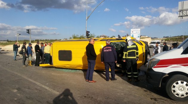 Gaziantep'te işçileri taşıyan minibüse ile otomobil çarpıştı. Devrilen minibüsteki 11 kişi ile minibüse çarpan otomobilde bulunan 3 kişi yaralandı.