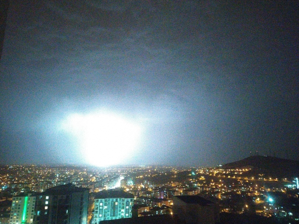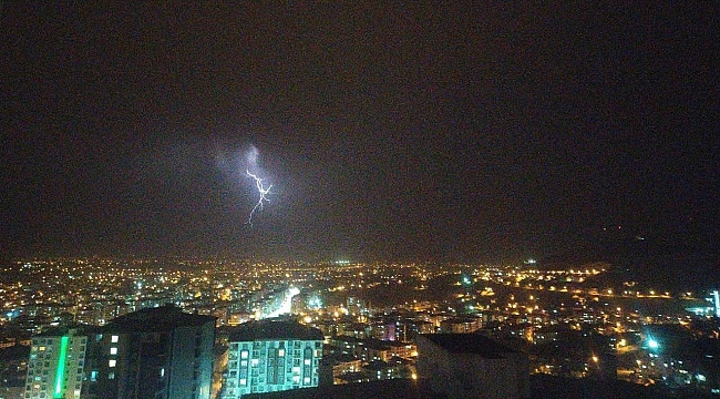 Yağmur kentin bazı bölgelerinde etkili olurken şimşekler geceyi aydınlattı. Geceyi aydınlatan şimşekler, güzel görüntüler oluşturdular.