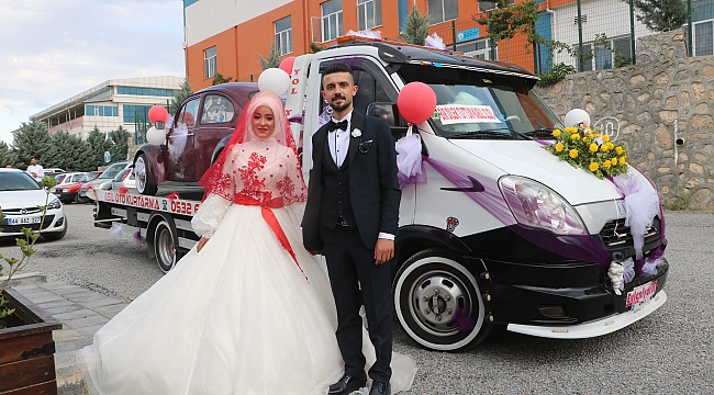 Malatya’da yaşayan 28 yaşındaki Furkan Karakaplan ve 27 yaşındaki Dilek Korkmaz, geçtiğimiz gün yapılan düğünle hayatlarını birleştirdi. Oto kurtarma işi yapan damat, ekmek parasını kazandığı çekiciyi gelin arabası yapmak istedi.