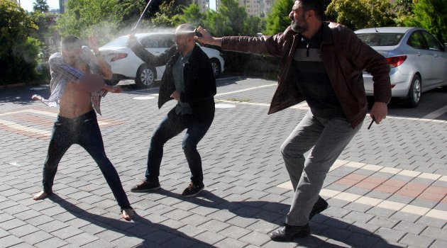 Polis bir türlü bıçağı bırakmayan gence biber gazı ile müdahale etmek istedi. Bunun üzerine Caner Y. kendisine yaklaşan polislere bıçakla saldırdı. Polis de biber gazıyla Caner Y.'ye müdahale etti. Ancak buna rağmen elindeki bıçağı bırakmayıp sallamaya devam edince polis copla şahsa müdahale etti. Bir apartmana giren Caner Y.'nin elindeki bıçak güçlükle alınarak ambulansla hastaneye kaldırıldı. Bu sırada Caner Y.'nin yakınları gözyaşlarına boğuldu.
