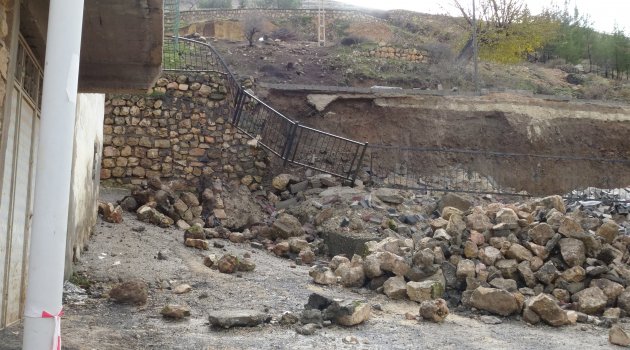 Duvarın çökmesi sonucunda yol kapandı. Gercüş Belediyesi ekipleri yolun açılması için çalışma başlattı.
