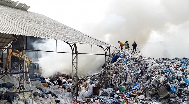 Bursa'nın İnegöl ilçesinde faaliyet gösteren geri dönüşüm tesisinde yangın çıktı.