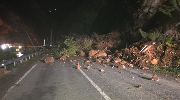 Giresun'da heyelan: Karayolu trafiğe kapandı
