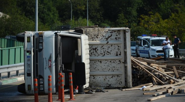 Bursa’da inşaat malzemeleri taşıyan kamyonet, girilmesi yasak olan yolda devrildi. Kamyonet şoförü ve yanındaki 3 kişi kazadan sonra olay yerinden kaçtı.