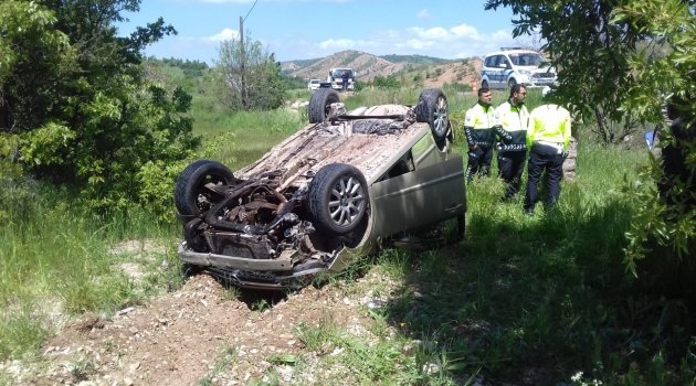 Gölbaşı'nda otomobil takla attı