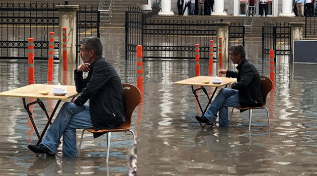 Yozgat'ta etkili olan sağanak yağış yolları göle çevirirken, Yerköy ilçesinde sağanak yağış sonrası ilginç bir görüntü yaşandı. İlçe Kaymakamlığı önünde belediye ve itfaiye ekipleri su tahliye işlemi yapıp, trafik polisleri de trafik akışını sağlamak için mücadele ederken bir vatandaş diz kapağına kadar gelen suyun içerisine masa ve sandalye koyup çorba keyfi yaptı. Vatandaşın çileyi keyfe dönüştürmesi bir başka vatandaş tarafından cep telefonu ile görüntülendi. Vatandaşın göle dönen yol ortasında çorba keyfini diğer vatandaşlar meraklı gözlerle izlediler. Polis ekiplerinin gelmesiyle esnaf tarafından masa ve sandalyenin kaldırılmasıyla çorba keyfi sona erdi.