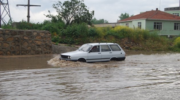 Göle dönen yolda sürücülerin zor anları