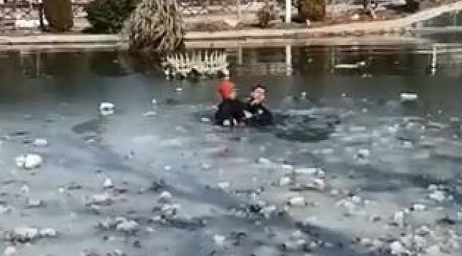Malatya'da oyuncağını almak isterken buz tutan gölede düşen depremzede çocuğu dalgıç polis kurtardı.