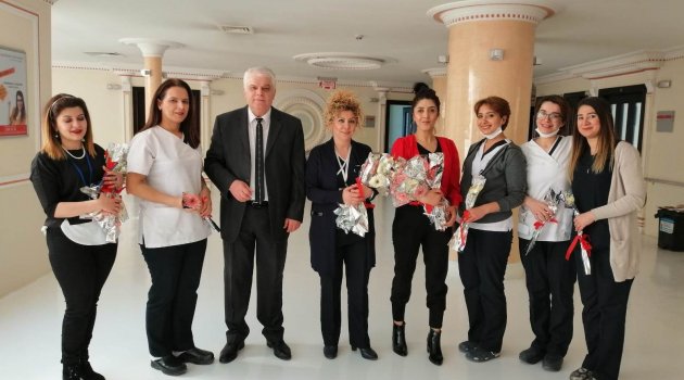 Gözde Sağlık Grubu, hastanede tedavi gören kadınların, 8 Mart Dünya Kadınlar Günü'nü kutlayarak, karanfil verdi.