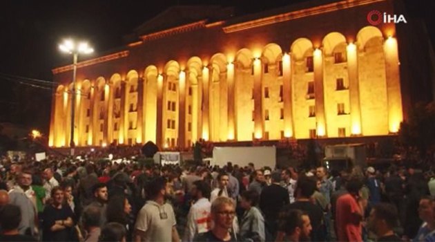 Rusya heyetinin Gürcistan Parlamentosu’nda oluşturduğu koltuk krizi sonrası binlerce Gürcistan vatandaşı yine parlamento binası önünde toplanarak hükümet karşıtı protesto gösterisi düzenledi.