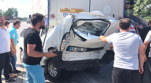 Kaza, Terme ilçesi Samsun-Ordu yolu Evci mevkisinde meydana geldi. Alınan bilgiye göre, trafik ışıklarında bekleyen Selim Yalın idaresindeki 55 AGL 43 plakalı hafif ticari araca arkadan gelen Hızır Ali Reisoğlu'nun kullandığı 78 AAF 081 plakalı tır çarptı. Çarpmanın etkisiyle ticari araç, kırmızı ışıkta bekleyen önündeki Hüseyin Soylu yönetimindeki 05 ABG 289 plakalı tırın dorsesinin altına girdi.