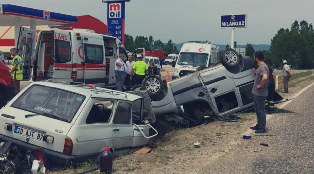 Edinilen bilgiye göre, Kastamonu-Taşköprü karayolunun 2’nci kilometresinde sürücüleri henüz belirlenemeyen 67 TF 318 plakalı hafif ticari araç ile aynı yöne seyreden 20 AJT 87 plakalı otomobil çarpıştı. Kazada araçlar, şarampolde takla atarak durabildi. Yaşanan kazada hafif ticari araçta bulunan Ethem Türkoğlu (9), Sıla Türkoğlu (13), Adil Türkoğlu (39), Kerime Türkoğlu (34) ve Melek Türkoğlu ile otomobilde bulunan Tunahan Yıldız (25) ve Tuğba Zeliha Yıldız (19) yaralandı. Yaralılar, olay yerine çağrılan 112 Acil Servis ekiplerince Kastamonu Devlet Hastanesine kaldırılarak tedavi altına alındı.