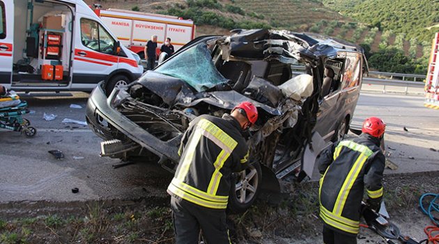 Manisa’nın Kula ilçesinde seyir halindeki bir hafif ticari araç, aynı yönde ilerleyen kamyona arkadan çarptı.
