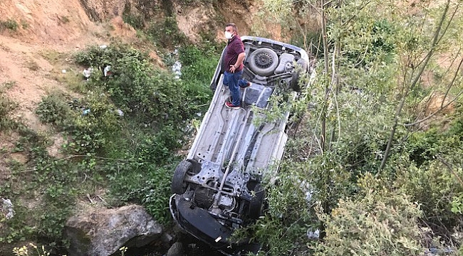 Eyüpsultan’da kontrolden çıkan hafif ticari aracın yaklaşık 5 metre derinliğindeki gölet menfezine düştüğü kazada yaralanan sürücü hastaneye kaldırıldı.