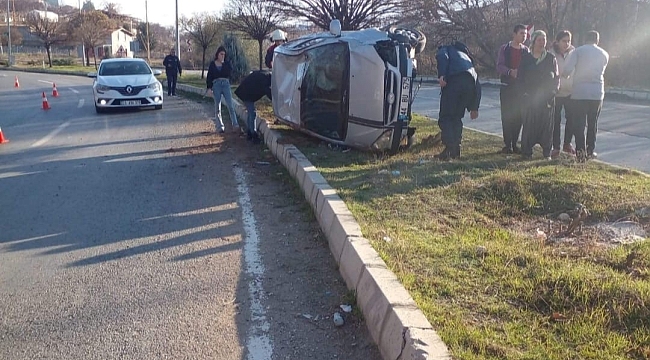 Malatya'da sürücünün kontrolünden çıkan hafif ticari araç çarptığı refüjde yan yattı. Kazada 3 kişi yaralandı.