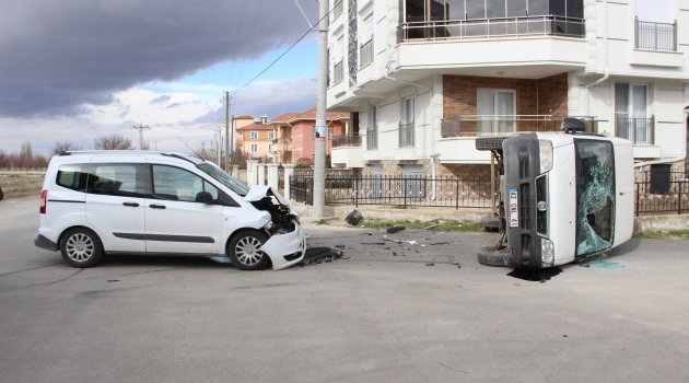 Hafif ticari araçla çarpışan kamyonet devrildi: 2 yaralı