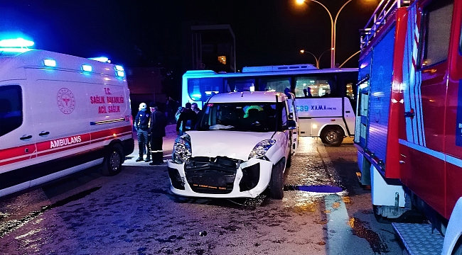 Hafif ticari araçla çarpışan minibüs devrildi