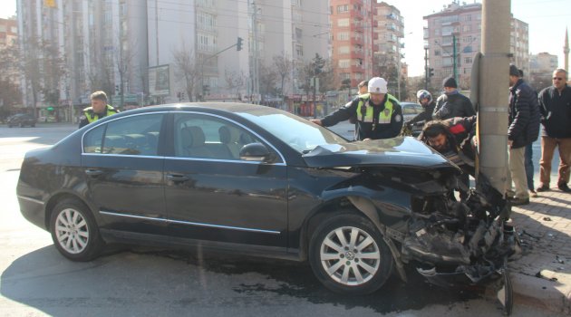 Kaza, saat 11.00 sıralarında merkez Selçuklu ilçesi Ahmet Hilmi Nalçacı Caddesi ile Rauf Denktaş Caddesi Kavşağında meydana geldi. Edinilen bilgiye göre, Kule istikametinden şehir merkezi istikametine giden Lütfü G. (46) idaresindeki 42 FP 682 plakalı otomobil, hatalı 'U' dönüşü yaptığı öne sürülen Süleyman K. (67) idaresindeki 42 NF 581 plakalı otomobille çarpıştı. Çarpmanın şiddetiyle kontrolden çıkan otomobil kaldırımdaki beton direğe çarparak durabildi. Kazada hafif ticari araçta bulunan yolculardan Hediye K. (67) yaralandı. Yaralı kadın, olay yerine sevk edilen ambulansla Numune Hastanesine kaldırılarak tedavi altına alındı. Kaza nedeniyle aksamaların olduğu cadde, araçların bulundukları yerden kaldırılmasıyla tekrar normale döndü.