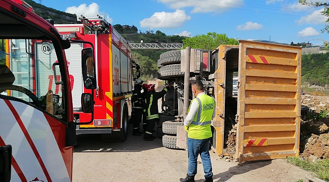 Hafriyat yüklü kamyon devrildi: 1 yaralı