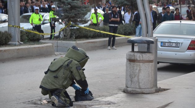 Bulvar Caddesi üzerindeki bir çöp kutusunun önüne bırakılan bilgisayar çantasını fark eden vatandaşlar, hemen polis ekiplerine haber verdi. Güvenlik güçleri caddeyi ulaşıma kapatırken, olay yerine gelen bomba imha uzmanları şüpheli çantayı fünye ile patlattı.