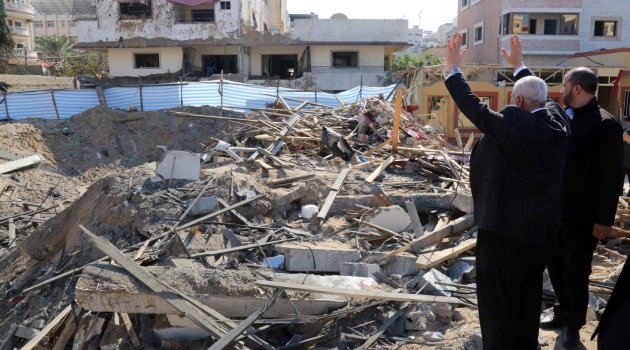 Hamas’ın lideri İsmail Haniye, İsrail’in hava saldırısında yıkılan ofisinin enkazını ziyaret etti. Haniye, enkazın yanında yaptığı açıklamada, Hamas’ın Gazze sınırının yakınında şiddetin yükselmesiyle İsrail’e bir ders verdiğini savundu. Haniye, Başkanlık Ofisinin restore edileceğini söyleyerek, “Direniş, sözünü söylemiş ve İsrail mesajı almıştır. Gazze’deki Siyonist kibrini bitmesine yardımcı olan herkese teşekkür ederim.” diye konuştu.
