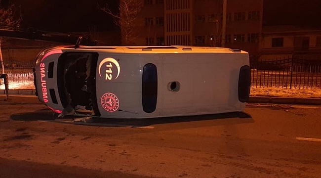 Hasta nakli yapan ambulans devrildi