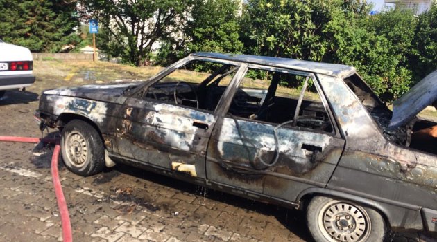 Hastane bahçesinde araç alev alev yandı