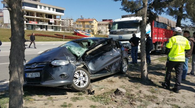 Kaza, Samsun'un İlkadım ilçesi Derecik Mahallesi Samsun-Ankara karayou üzerinde bugün meydana geldi. Edinilen bilgiye göre, Trabzon'dan Samsun Eğitim ve Araştırma Hastanesi Onkoloji Merkezine hasta olan annesi Fatma Berber'i (83) getiren Murat Berber (35) idaresindeki 61 NF 176 plakalı otomobil ile Osman Kaya’nın (55) kullandığı 28 K 1053 plakalı kamyon çarpıştı. Kazada otomobil sürücüsü Murat Berber, hasta olan annesi Fatma Berber, Cemile Berber (42) ve Ali Berber (41) yaralandı. Yaralılar, 112 acil servis ekiplerince ambulanslarla Samsun Eğitim ve Araştırma Hastanesine kaldırılarak tedavi altına alındı.