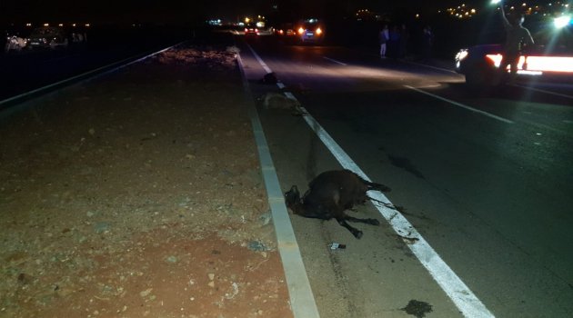 Hatay’ın Hassa ilçesinde iki otomobil yolda bulunan keçilere çarptı.