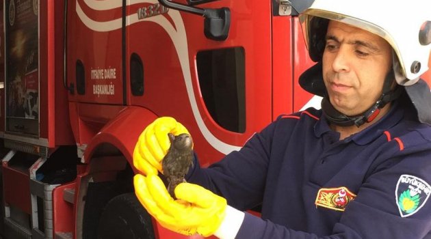 Havalandırma boşluğuna düşen kuşu itfaiye ekipleri kurtardı