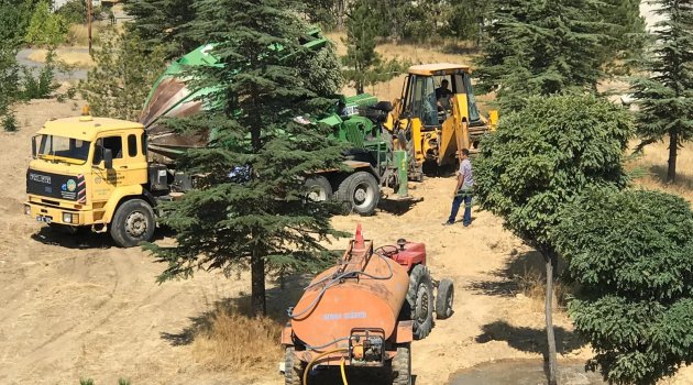Hekimhan Belediyesi yol çalışma alanındaki ağaçları taşıyor