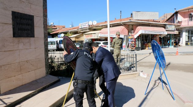Malatya’nın Hekimhan ilçesinde 29 Ekim Cumhuriyet Bayramı münasebetiyle çelenk sunma programı düzenlendi.