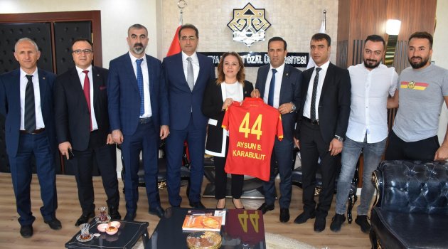 Ziyaretin anısına BtcTurk Yeni Malatyaspor Başkanı Adil Gevrek tarafından Rektör Prof. Dr. Karabulut’a 44 numaralı üzerinde “Aysun B. Karabulut” isminin yer aldığı Yeni Malatyaspor forması hediye edilirken, Rektör Prof. Dr. Karabulut tarafından ise Gevrek’e üniversitenin plaketi hediye edildi.