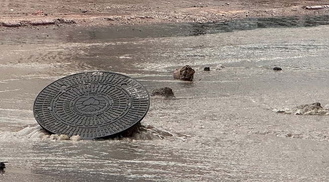 Vatandaşlar kendi imkanları ile yerinden çıkan logar kapağının çevresine taşlar koyarken, aynı bölgede geçmişte yağan yağmur sonrası da benzer görüntüler yaşanmıştı.