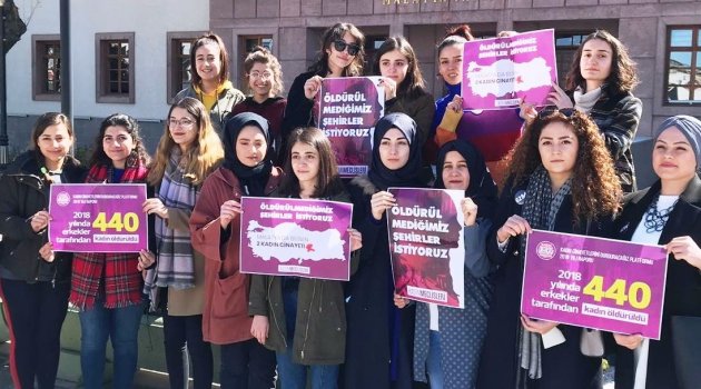 Malatya da bu yıl ocak ayında eşi ile boşanma sürecinde tüfekle öldürülen anne-kız Sibel Gülbaba ve Fatma Yıldırım için bulunduklarını belirten Karaca, "20 kattan aşağı atılarak öldürülen ve ardından intihar etti diye üstü kapatılmaya çalışan Şule Çet için buradayız. Hukuk Fakültesinde öğrencisi tarafından canice öldürülen Ceren Damar için buradayız. Canice öldürülen Münevver Karabulut için buradayız. Canice öldürülen Özgecan Aslan için buradayız. Öldürülen bütün kadınlar için buradayız.