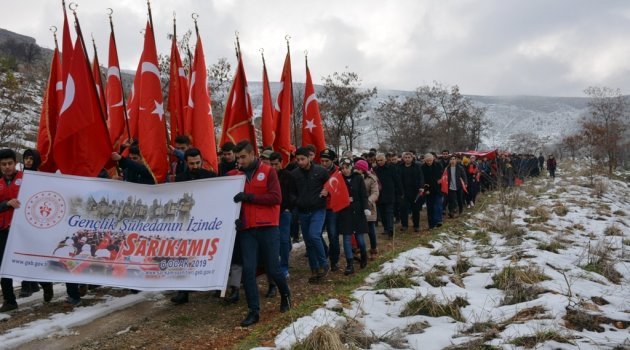 Katılımcıların konuşmalarının ardından söz alan Vali Aydın Baruş yaptığı konuşmasında: “Bugün tam 104 yıl önce birinci Dünya Savaşı’nda Rusların memleketimizin işgalini önlemek için kışın dondurucu soğuğunda Allahuekber Dağlarına yürüyerek vatan diyerek, millet diyerek canını -30 derecelerde teslim eden aziz şehitlerimizi Sarıkamış Şehitlerimizi anmak üzere bugün bu yürüyüşü tertip ettik. Gençlik ve Spor Bakanlığımızın pankartında “Gençlik Şühedanın İzinde” sloganı var. Biz buraya katılan gençlerimizle gurur duyuyoruz. Şühedanın temsil ettiği ruhu ve onların göstermiş olduğu istikameti kavrayan gençlere ne mutlu. Bu vesileyle aziz şehitlerimizi rahmet, minnet ve şükranla anıyoruz. Allah ruhlarını şad etsin.