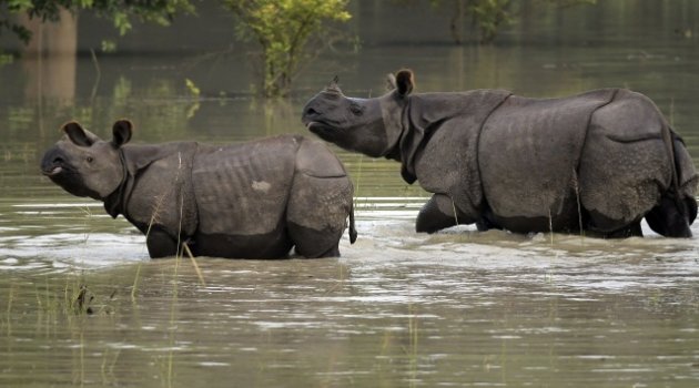 UNESCO tarafından tanınan Kaziranga, dünya üzerinde yaşayan tek boynuzlu gergedanların 3'de 1'ine ev sahipliği yapıyor. Tek boynuzlu gergedanların çoğunun etrafı sularla çevrilmiş kara parçacıklarına çıktıkları gözlemlendi.
