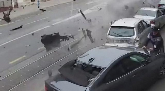 Kaza anında karşıdan karşıya geçen bir yaya ile kaldırımdaki bir kişi ezilmekten son anda kurtuldu. Kaza anları güvenlik kamerasına kaydolurken, sürücünün hafif yaralandığı ve en az 5 aracın kullanılamaz hale geldiği belirtildi.